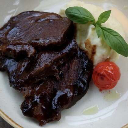 Томленые говяжьи щеки с картофельным пюре
